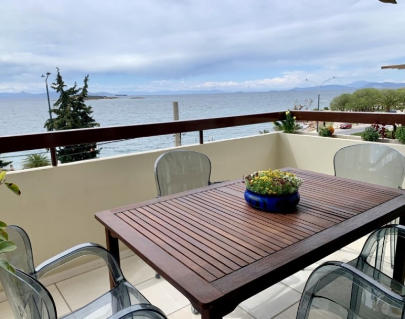„An elegant fully equipped beachfront apartment with large verandas directly overlooking the Athens Riviera, located in Voula, southern suburb of Athens. Voula has two long, organized, sandy beaches with beautiful clear waters, awarded the European blue flag for...