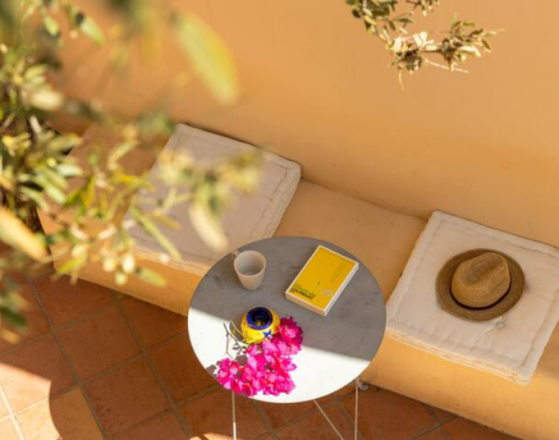 „The Nest, this cycladic villa will bewitch you with its uniqueness, charm and laid back atmosphere. 3 cycladic cube-shaped buildings have been restored & transformed into a secluded, tranquil & laid- back villa-complex, around an open air patio....